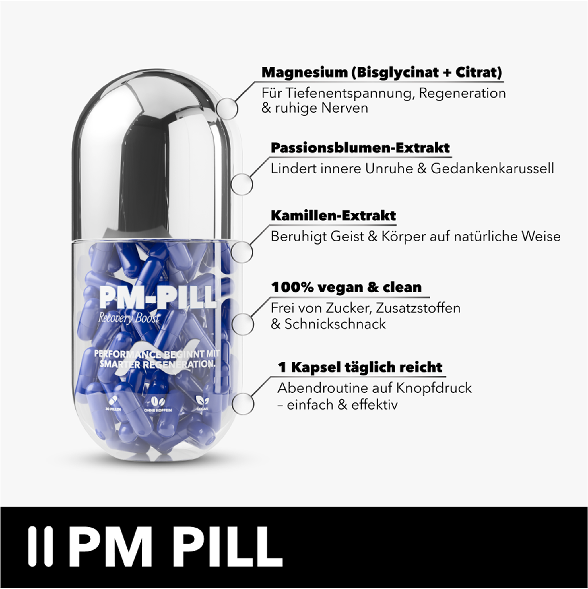 Die AM- und PM-PILL sind keine Aufputsch- oder Einschlaftricks. Sie sind dein System: morgens klar, abends ruhig. Von fokussiertem Start bis entspannter Regeneration.